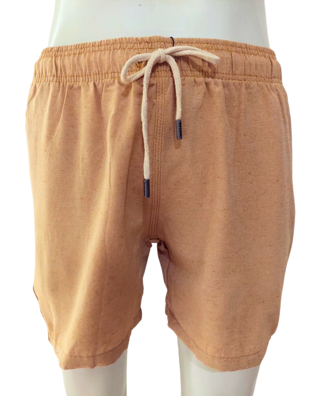 Você receberá 1 shorts Linho Lux na cor areia com cós elástico e cordão para ajuste, confeccionado em tecido misto 61% algodão e 39% poliéster.